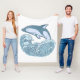 Ilustração de golfinho azul giro em estilo retrô com decoração de ondas marítimas para todos que amam golfinhos adoráveis