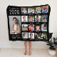 A graduação em preto mantém um cobertor de velo com 17 fotos da colagem do formando durante seus anos escolares e seu nome em uma tipografia branca moderna. Adicione suas legendas personalizadas em cada foto.