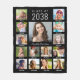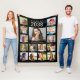 A graduação mantém um cobertor preto de velo com 15 fotos de colagem do formando durante os anos escolares e seu nome em um roteiro branco-na moda. Adicione suas legendas personalizadas em cada foto.