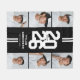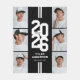 Um cobertor de graduação atlética preto e branco moderno, com um layout de ano de classe ocular em uma fonte variante, uma colagem fotográfica do formando, duas listras brancas, seu nome e a escola ou universidade em que frequentaram.