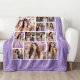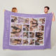 Crie um belo e significativo manejo com a nossa lavanda personalizada colagem de fotografias, mantendo o nome Quinceañera fleece cobertor. Este cobertor macio apresenta uma colagem de 14 das suas fotos favoritas, perfeito para capturar memórias do seu dia especial. Texto decorativo e borda florescem. Personalize o cobertor com o nome, data e local de sua celebração de marco. As cores são editáveis para que você possa coordená-las com suas fotos ou decoração da sala. Um presente perfeito para a própria Quinceañera ou uma lembrança maravilhosa para a família. © Kimbellish, LLC