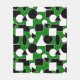Este cobertor de velo médio tem um design de Bauhaus de triângulos, círculos, retângulos e pentágonos em preto e branco num campo de verde.