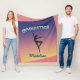 Embrace the beauty of gymnastics with this personalized fleece blanket. The design features a striking silhouette of a gymnast mid-routine, set against a mesmerizing ombre gradient of deep blue, purple, pink, and yellow. The word 'GYMNASTICS' is presented in a bold, holographic-style text, adding a touch of sparkle. Below the gymnast, a personalized name can be added, transforming this into a cherished item for any aspiring gymnast. This ultra-soft fleece blanket offers warmth and comfort, making it an ideal gift for birthdays or special achievements in the world of gymnastics.