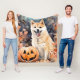 Cobertor De Velo Halloween Akita Com Pumpkins Assustado