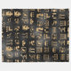 Este cobertor legal e único personalizado apresenta um tema antigo de arte egípcia. Um padrão de hieroglifos dourados é impresso em um fundo texturizado preto. Coloca-se uma inicial de monograma no centro de uma armação de ouro.