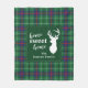 Um cobertor de natal doce e doce lar que você pode personalizar facilmente clicando no botão "Personalizar", apresentando a silhueta de veados e o clã Duncan tartan em verde e cheque roxo. Perfeito para suas noites confortáveis durante os feriados. Faz um presente de excelente