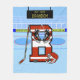 Podemos criar este design com qualquer esquema inicial e em qualquer cor. Por favor, entre em contato conosco através do link de pedido PROR para compra e nós o criaremos para você, design de hóquei Divertido, para o jovem jogador de hóquei no gelo ou fã de hóquei. Posicione a letra B em cores brancas e vermelhas da equipe com o bastão de hóquei coordenado, capacete, skates e disco. O plano de fundo apresenta uma pista de hóquei no gelo com um painel de avaliação personalizável para a sua mensagem personalizada