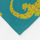 Mosaico, desenho gráfico, de lagarto Gecko, apresentado em cores de ouro, fuschia, limão, lacre, castanho e preto, semelhantes a répteis.