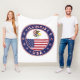 Crachá de Illinois com bandeira de Illinois e bandeira de cores EUA, forma arredondada. Emblema de Illinois. Selo de Illinois. Coleção dos Estados Unidos.