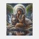 Sob o brilho luminoso de uma lua de cheio, uma índia senta-se graciosamente ao lado de um lobo majestoso, seu vínculo evidente na tranquilidade do momento. Cercados por árvores exuberantes e águas suaves, eles incorporam o espírito de harmonia na natureza.
