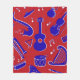 Esta design é uma mistura de diferentes instrumentos musicais em azul e branco com um fundo vermelho. Esta imagem está disponível em uma variedade de outros produtos, basta clicar no link abaixo da foto perto de 'Sobre este Design'.