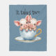 Cute "It takes Two" Teacup Piglets Design fleece blanket featuring, two cute piglets in a teacup set on a plain powder blue / grey background.