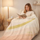 Feminine minimalist design in soft ivory with a blush gradient edge and a metallic-look gold streak for visual contrast. This fleece layer suits neutral bedrooms, living rooms, or reading corners, adding warmth while maintaining a clean, polished interior aesthetic.
