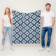 Cobertor De Velo Japanese Navy Blue Ivory Floral Geometric Pattern