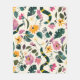 Essa trabalho de arte apresenta uma cena de jardim balbuciana e encantadora, com uma variedade de flores vibrantes, folhas e elementos lúdicos colocados sobre um fundo de creme macio. A composição é cheia de verde-luxuoso, flores florescentes em pinças, amarelos e púrpuras, e o aparecimento ocasional de um cobra tecendo através da folhagem. A design combina elementos da natureza com um toque de fantasia, criando uma atmosfera viva e imaginativa. O uso de cores ricas, saturadas e formas dinâmicas reforça o sentido de movimento e vitalidade da cena.