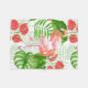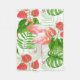 Design de padrão aquoso com flores e aves flamingos, monstera e palmeiras.