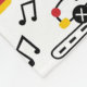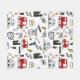 A playful, cartoon-style city pattern featuring buses, cars, helicopters, traffic lights, buildings, and fun doodle text like “Beep Beep,” “Wuz Up?” and “Go,” in bright red, yellow, blue, and black tones.