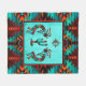 Este é um único "Um dos tipos" do sudoeste de Kokopelli Sherpa Blanket! Ele apresenta dois Kokopelli sudoeste tocando flauta e dançando em torno de um cacto sob o sol em um fundo de turquesa... cercado por uma borda sudoeste em Turquesa, Design de Arte Original Laranja & Negra pelo artista Kerry Miller.