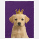 Cachorro no Dourado cobertor do velo da coroa de Ricaso. Um adorável cachorro Labrador amarelo em fundo roxo profundo. Ideal para amantes de animais/cães.