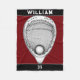 Um cobertor de lacrosse criativo com design de goleiro de lax e bola sobre fundo de marrom. Para personalizar o texto de edição para adicionar o nome do jogador de lax e o número do grupo.