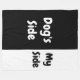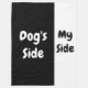 Um cobertor engraçado que mostra quem é o chefe. À esquerda, um lado maior do cobertor diz "Lado do Cachorro" e à direita, o lado menor diz "Meu Lado". Escrito de forma fácil para identificar a fonte Chewy em um esquema de cores preto e branco oposto. Também disponível em tamanhos menores.