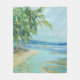 "Blue Coastal Lagoon" de Suzanne Wilkins. Possui uma praia serena com árvores tropicais.