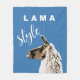 Retrato Lama sobre fundo azul e texto branco "Estilo Lama"
