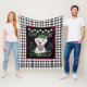 Um cobertor de cachorro branco de Natal faz decorações de Natal para o excelente Boxer para os feriados. Perfeito para pessoas que adoram Boxers brancos... têm um Natal de cachorro-boxer e decoram sua casa com um tema de cachorro-boxer. Este cobertor branco do cão Boxer é excelente de se abraçar com o seu cão Boxer no sofá. Coloque presentes de Natal de cão Boxer debaixo da árvore para uma família de cães Boxer. Excelente presente de Natal para uma mãe de cachorro-boxer. Tem um cachorro branco Boxer com um chapéu de Papai Noel na xadrez branca de búfalo.