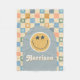 Este cobertor de crianças capta vibrações retrógradas da década de 70 com um tema azul giro, e um padrão pastel testado. Completamente personalizável, inclui espaço para o nome dos seus rapazes num roteiro divertido.