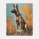 Um malinois negro e brando alemão se coloca contra um fundo de queda.
