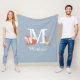 Cobertor de flanela azul fofo com um filhote de raposa da floresta e um coelho sentados de cada lado do monograma e nome. Criado por Thisisnotme©