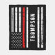 Bandeja fina de bandeira vermelha - design americano de bandeira em cores de bandeira de bombeiro, design angustiado. Perfeito para todos os bombeiros, bombeiros e todos aqueles que os apoiam. Personalize este cobertor do bombeiro com o nome dos bombeiros ou o nome da família. Este cobertor fino de linha vermelha é perfeito para presentes de aposentadoria de bombeiros, ou presentes de formatura de bombeiros. . COPYRIGHT © 2020 Judy Burrows, Black Dog Art - Todos Os Direitos Reservados. Bandeja de Bombeiro Personalizado - Flancete Vermelho fino