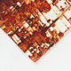 Linhas feitas cruzadas e pequenos quadrados com o livro de entalado ou esculido em toneladas de marrom e laranja que lembrar um cor de ferrugem.