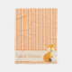 Esta cobertura caracteriza um teste padrão de repetição da laranja e de listras tan e uma tira tan na parte inferior para o outro texto feito sob encomenda de um bebê o nome ou. A raposa alaranjada e tan de um clipart bonito com uma cauda derrubada cinza senta-se no canto inferior direito da cobertura do bebê.