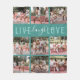 Um cobertor de pulgas víbicas positivo com um fundo de terreno escuro que pode ser mudado para qualquer cor, o ditado "ao vivo, ria, amor" e 9 fotos quadradas para você personalizar com sua própria.
