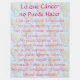 A arte apresenta o poema "O que o Cancer não pode fazer" em espanhol ou espanhol. Esta pintura tem um anjo de coração colorido e o poema de "Lo que cáncer no Puede Hacer" é impresso sobre ela. As palavras do poema dizem "Lo que cáncer no puede hacer. Cáncer é limitado... sem puede paramor. Sem puede romper esperanza. Não há nenhuma porca corroer. Sem puede destruir paz. Sem amistades puede. Sem puede suprimir memorias. Sem puede enciar valor. Nenhum puede invadir a alma. Sem puede robar la vida eterna. Nenhum conquistador de puede el espíritu. -Autor desconocido" Faça com que a equipe de reconhecimento de canceres personalizada fique com os cobertores para você mesmo ou como presente para um ente querido. Adicione suas próprias palavras ou imagens a este cobertor flexível para presentes especiais de cancer. Altere a cor de fundo com as suas próprias opções de cor pessoal.