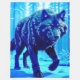 Um grande lobo negro da geada azul percorrendo um design da floresta nevada.