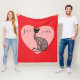 Stylish Black Cat with Green Eyes in Filigree / Quilling style on a Pink heart with a red background with the words "Love Cats" fleece blanket.