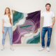 Soft flowing waves of teal and deep purple blend together with shimmering gold sparkles. A stylish abstract pattern with a modern and luxurious feel.