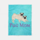 Cobertor de Fleece Aconchegante Mãe de Pug. Envolva-se em conforto com este cobertor macio e felpudo de Mãe de Pug. O design de Pug apresenta um par de pugs castanhos com texto roxo que diz Mãe de Pug. Esses cobertores laváveis na máquina estão disponíveis em 3 tamanhos. A frente é impressa de ponta a ponta em cores vibrantes. A cor do verso é branco-esbranquiçado. Este cobertor de Mãe de Pug é um ótimo presente para amantes de cães Pug e é perfeito para abraços em clima frio.