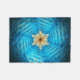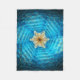 Uma estrela fractal de tom azul e amarelo de David em um fundo escuro. Adicione seu próprio texto.