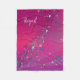 Belo design de cobertor de velo personalizado com estrelas metálicas brilhantes sobre fundo magenta com brilhos e luz flare. O texto é totalmente personalizável.