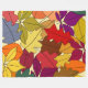 Esse cobertor de velo grande tem um design de uma pilha de folhas em verde, amarelo, laranja, azul, marrom e vermelho em um campo de amarelo claro.