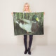 Uma bela foto de pato-grande adorna este cobertor perfeito para aquelas noites frias. Este pássaro masculino está parado sobre uma rocha na água e exibindo as penas verdes brilhantes de sua cabeça. Um pano de fundo de verduras verdes e marrons completa a fotografia fornecendo muitas cores de tons de terra.