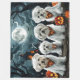Libere o espírito assustador com esta design sombria do Dia das Bruxas apresentando um bando de cachorros sob um céu escuro e iluminado, cercado por morcegos voadores e abóboras brilhantes. Perfeito para aqueles que amam um toque de diversão terrível com seus amigos peludos!