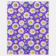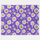 Um padrão contínuo colorido apresentando margaridas com centros amarelos, folhas azuis e um fundo roxo vibrante. Perfeito para temas de primavera, designs de tecidos e artesanatos digitais ou impressos alegres.