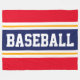 Este design desportivo e divertido apresenta dentro de texto BASEBALL arrojado, uma faixa central azul de marinho larga destacada com faixas duplas brancas e amarelas contra faixas externas brilhantes e vermelhas. O texto neste design pode ser personalizado.
