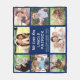 Um cobertor azul de velo azul marinho de colagem personalizado para o seu tio. Adicione 8 fotos de seus sobrinhos e sobrinhos, outros membros da família, animais de estimação, etc., mude a expressão "Nós te amamos" para "Eu te amo", se necessário, e se ele é chamado de "tio", "tio", "tio", etc., e adicione os nomes de seus sobrinhos e sobrinhos, tudo em tipografia e roteiro brancos modernos.
