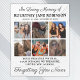 Um cobertor de homenagem personalizado que apresenta 6 fotos preciosos do seu ente querido perdido, o texto "em memória amorosa", o nome, as datas de nascimento/morte, e a lembrança dizendo "sua presença nós perdemos, sua memória que nós valorizamos, te amando sempre, esquecendo você nunca".