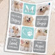 Celebre seu melhor amigo com um cobertor personalizado de colagem de fotos de memorial de animal de estimação em um design moderno de blocos de cores cinza e turquesa. Este cobertor exclusivo de lembrança de memorial de cachorro é o presente perfeito para você, familiares ou amigos para homenagear aqueles que são amados.